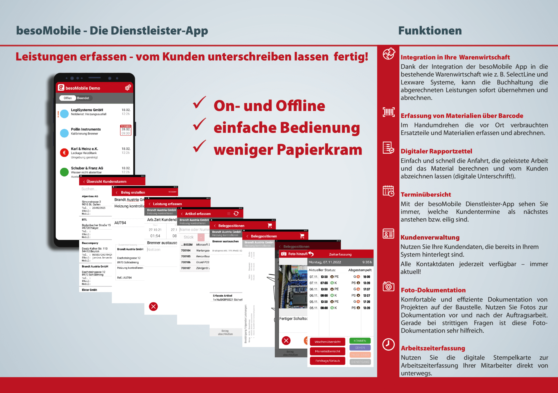 Weniger Aufwand, mehr Überblick – für dich und dein Team. Leistungen erfassen – vom Kunden unterschreiben lassen fertig!